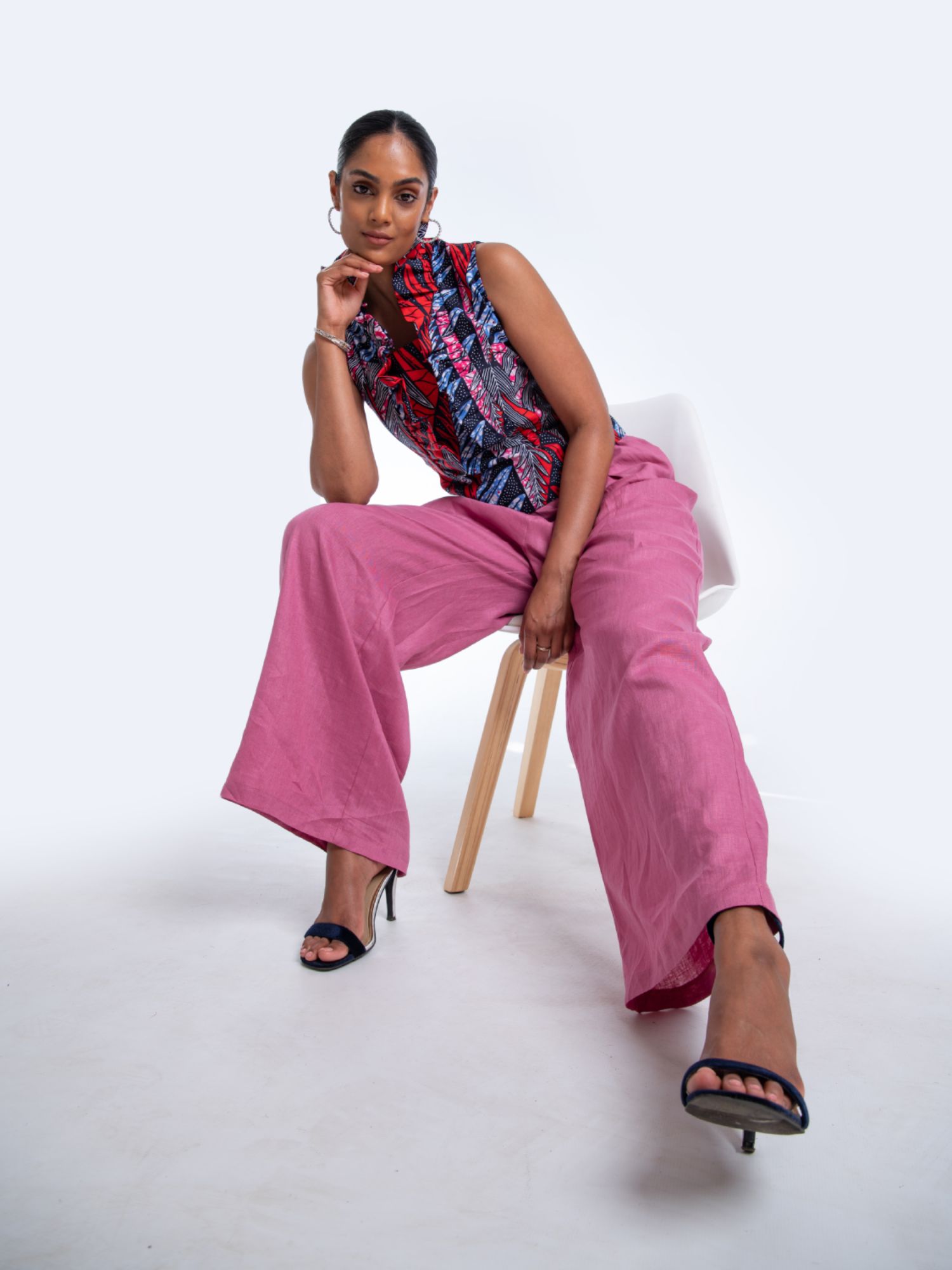 FIT & STYLE: The Frilled Neck Cotton African Print Top is adorned with delicate red Swarovski stones and is perfect for any summer occasion. Crafted from high-quality cotton, it features a fitted crop silhouette and a bespoke frilled high neck, which tapers gracefully from the neckline down to the front waistline. For a dressy look, pair it with stiletto heels, or opt for wedges for a casual summer vibe. Whether you’re attending a special event or enjoying a day out, moreover, this Ankara-inspired top seamlessly combines eco-conscious fashion with unmatched elegance. In addition, it offers the perfect blend of style and sustainability for any occasion.